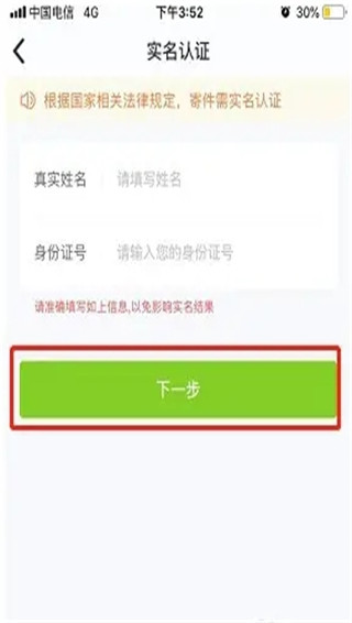 输入真实姓名和身份证号,点击【下一步】并按照指引即可完成