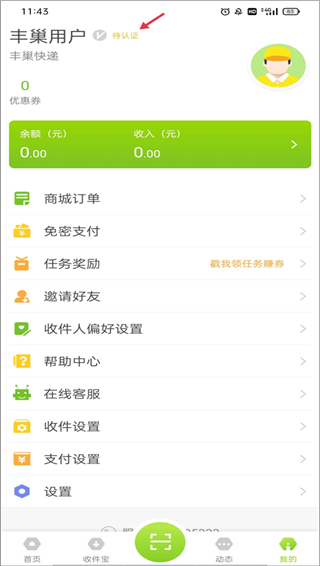 (1)打开软件并注册账号,从【首页】切换到【我的】界面,在这里你可以看到商城订单、免密支付、任务奖励、邀请好友等功能选项,点击上方的“待认证”。
