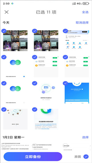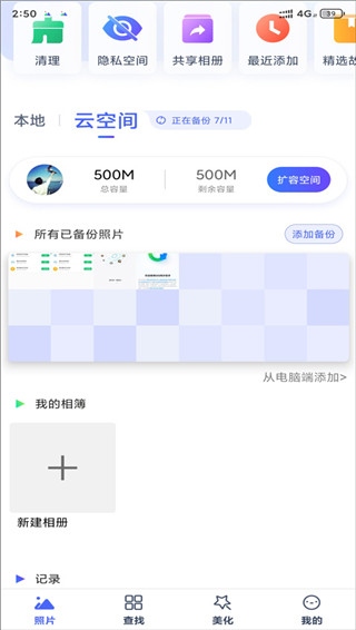 5、再点击【云】图标进行授权登录后,照片就备份上传成功了。