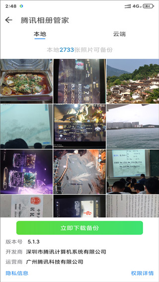 3、点击立即下载备份,上传照片,下载【相册管家】;
