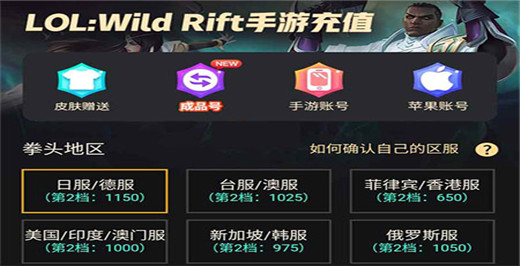 需要注意一下的是,小伙伴们在充值之前一定要看清楚自己所在的区服,比如英雄联盟手游外服显示什么国家地区,就选择相应的区服,如果选错了是不能充值的。