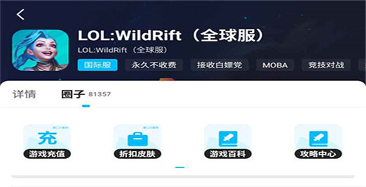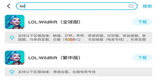 小伙伴们首先打开app,在搜索框里输入“LOL”进行搜索,找到LOL:wildrift全球服;