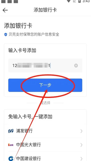 输入银行卡号点击“下一步”按钮即可绑定新银行卡。