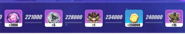 目标要求:区域总和达到240000分。水晶x120 目标要求:单区域首通,单区域总和40000分。爱因斯坦环磁机x40 目标要求:全区域总和按阶段获取,最高要求221000分。超导金属氢x110 目标要求:单区域等级达到4级,全区域总和按阶段获取,最高要求240000分。大量金币,星石 目标要求:全区域总和按阶段获取,最高要求240000分。晶体核心 目标要求:全区域总和按阶段获取,240000-252000分内 联动版本活动:【珍藏·是时拾识】:通关任意关卡9关可获得 意识勾玉x1