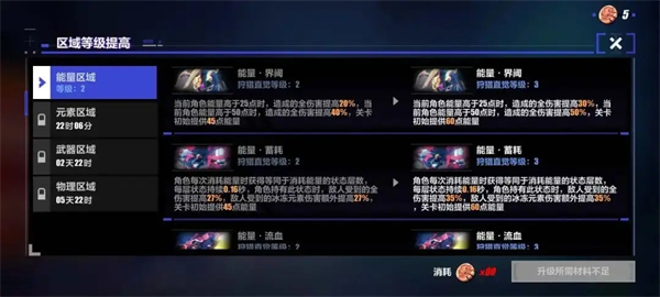 第一个区域的主题是能量,能量获取,消耗等操作可以获得强化能力。