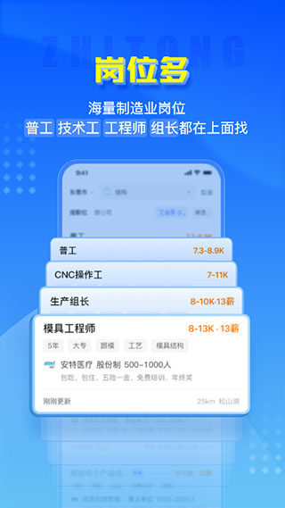 智通人才网app是一款面向全国的求职应用,软件专注于制造业人才招聘服务,你是cnc工程师,还是品质工程师,亦或者是电子工程师都可以在这里找到心仪的工作。在软件的首页中,有着丰富的招聘信息,点击进去即可查看详细的岗位需求和福利待遇等信息,并且你还可以对首页中推荐的招聘信息中选择薪资范围,岗位等进行筛选,让系统推送最近需要的岗位。