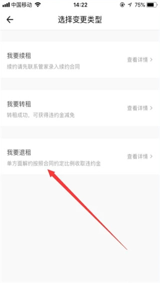 进入租约变更功能之后,选择其中的“我要退租”。