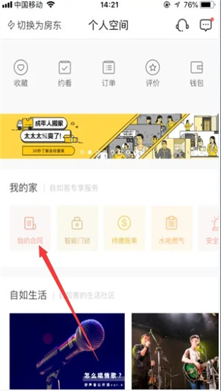 然后选择自如个人空间中的“我的合同”。