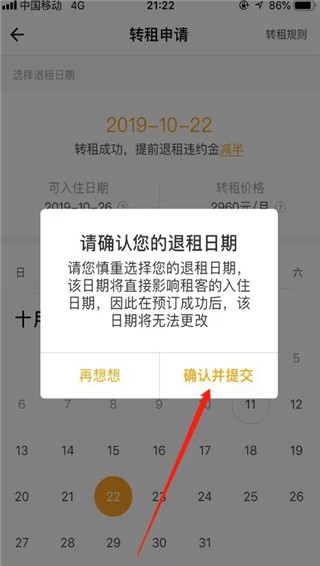然后选择退租日期,确认提交即可,如图所示。