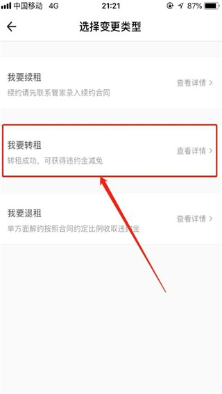 进入租约变更功能之后,选择“我要转租”,如图所示。
