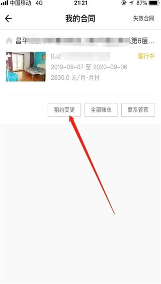 进入我的合同之后,选择其中的“租约变更”,如图所示。