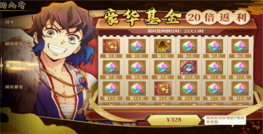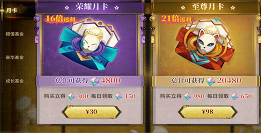 超值和豪华能给大量钻石和一些SSR碎片,成长基金给钻石和培养材料,返利比很高,前期重要的付费内容,大量的钻石能缩短队伍阵容构筑时间,可以进行更多的招募,微氪玩家建议也拿下一个成长基金