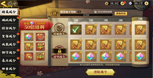 战令 (中氪和大氪玩家重点关注内容):战令都是50倍返利,开了哪个基本都可以拿下,总返利比在50倍,搭配双月卡,每天都能有非常多的钻石可拿,资源积攒速度非常快