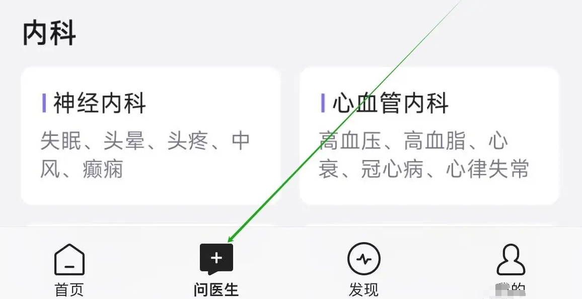 首先我们先进入到软件的主界面,可以看见屏幕上方有一个问医生的功能人口,我们点击它就可以了。