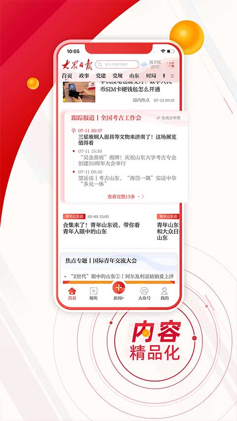 大众日报app是一款功能全面的新闻阅读软件,其内容广泛覆盖时政、品牌动态、文化体育、经济金融以及地方新闻等领域,实现了与纸质版报纸的同步更新。而且内容规划致力于实现精细化、专业化及个性化,展现高端政治、深入解析、集中关注、明显的山东风貌等明显特色,彰显山东区域的独特文化。