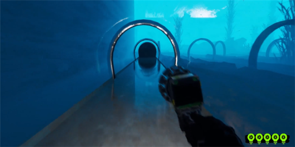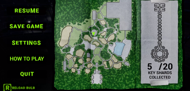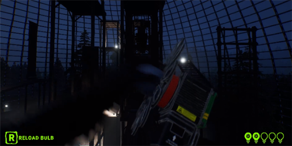首先本站下载游戏,加载进入点击play进入游戏,在主界面,左侧是虚拟键控制前后左右移动,右侧则E表示射击开门,靠左边的是换灯具,照亮,最上面的是抓取碎片