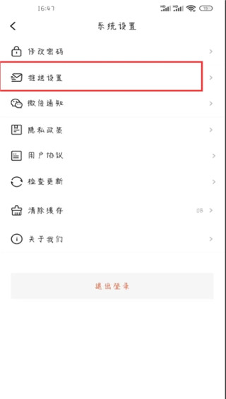 2、在设置页面之后,点击推送设置