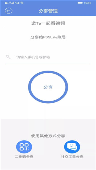 8、选择分享管理,用户可将此设备分享给其他16个用户,如果分享给现有用户,只需要输入对方的注册手机号或者邮箱,如果分享给新用户,可以通过扫描二维码、微信分享以及复制链接发送给对方。