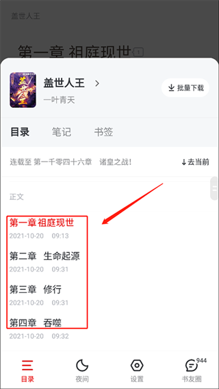 5、同时在下方我们还能够看见“批量下载章节”,我们可以点击来缓存该篇小说的章节,这样就算是离线也是能够阅读小说。