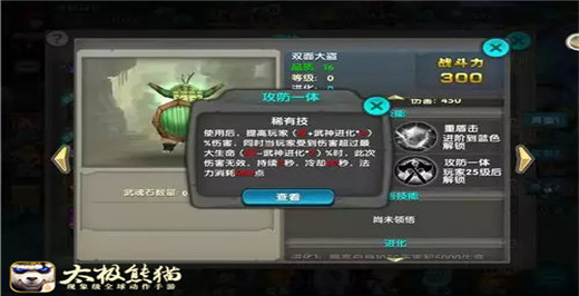 如果武神进化13级能为玩家提高62%同时能使超过生命14%的伤害无效,基本上4秒的持续时间内就等于加上了双层属性的BUFF又提高伤害又百分比免疫伤害。那么在这里需要注意的是,双面大盗的进化属性是为主人增加攻击力。