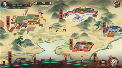 下面是一张鸟瞰地图,可见有山有水,景点错落。当万岁爷抵达各个挂名的地点,将触发各种事件,更有机会获得丰厚奖励。