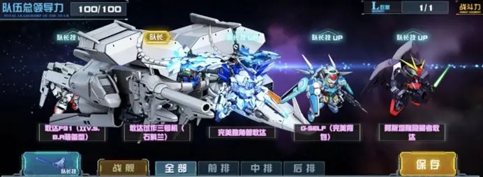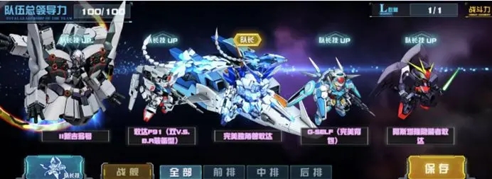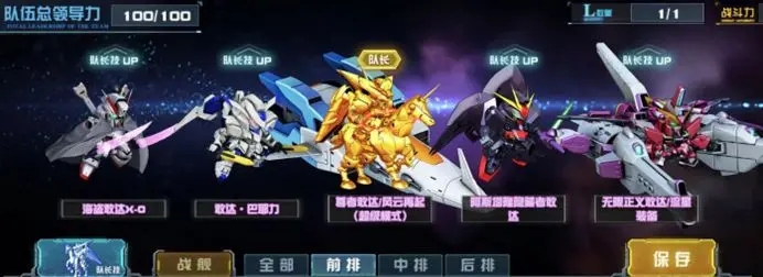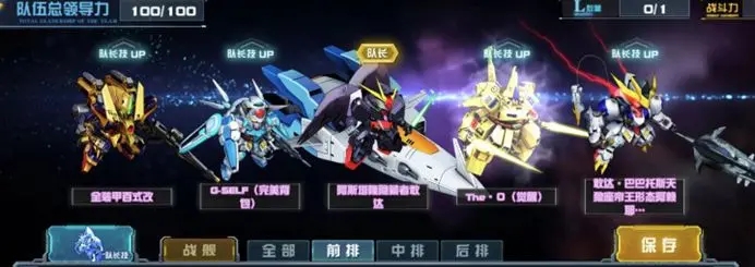 这是一支以典藏机体尊者敢达/风云再起(超级模式)为队长的队伍,上阵机体都拥有格斗和多模式双标签,可以发挥出不俗的威力。
