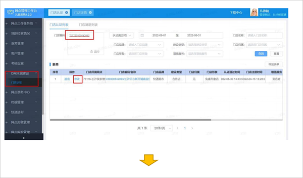 (1)神州系统—管理工作台—D网末端建设—门店认证—修改—门店寄件账号(填写需要更换的业务员掌中通账号)。