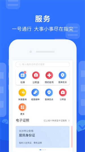 我的长沙app官方版这是由长沙市大数据中心精心打造的城市级官方服务平台,旨在为长沙居民提供全面的政务、公共和社会服务。作为官方推出的综合性服务软件,该app旨在一站式解决市民生活中的各类需求,从政务信息获取、社会服务参与到公共资源利用,该平台都提供了便捷的解决方案。用户可以通过这个平台,接触到超过2000项服务功能以及最新的城市资讯,真正实现“一键在手,服务我有”的便利生活。如果你正在长沙生活,那就赶快下载我的长沙app让你的生活更加便捷吧。