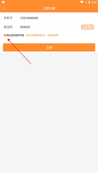 3、填写必要信息后,同意服务协议和隐私政策,完成注册