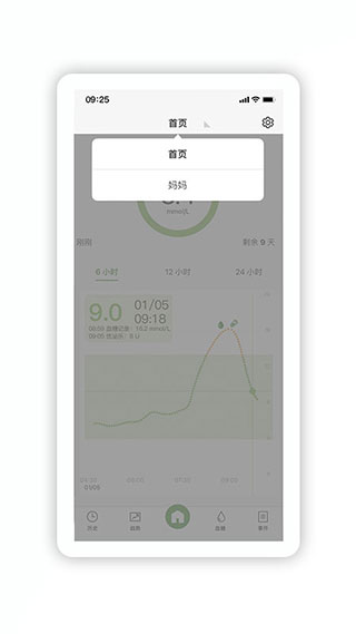 在APP首页的右上角,点击设置图标进入设置菜单。在设置菜单中选择“发射器”项,进入发射器绑定界面。您可以输入持续葡萄糖监测系统设备上的SN码,或扫描设备包装上的二维码来绑定您的设备。