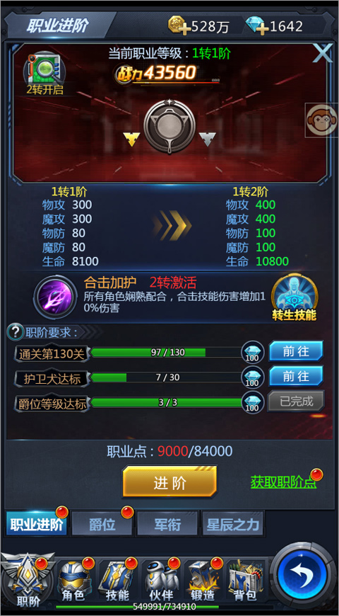要想进阶职业,玩家需要完成特定的任务并积累足够的职业点数。转生后,不仅是提升装备级别,也会开启新的游戏玩法、系统和转生技能效果等,以最大限度地提高战斗力。