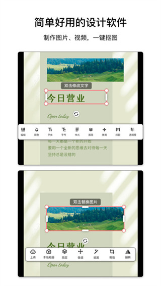 简单的文字和图像替换步骤,操作简便快捷,无需设计基础。