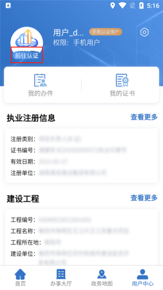 用户可以通过应用提交工程项目审批、建筑许可等申请,实现政务事项的线上办理。