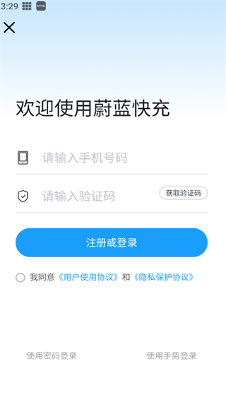 1、首先在本站下载蔚蓝快充app,并使用手机号登录;