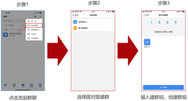 选择群聊成员后,用户可采用面对面建群的方式快速创建群组。