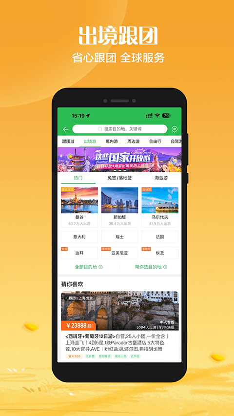 同时途牛旅游app最新版本紧跟现代旅游的个性化、碎片化趋势,构建了全品类的动态打包系统。用户可以根据自己的需求自由组合出行方案,从交通、住宿到娱乐项目,一应俱全,真正实现了按需订制,满足个性化需求。通过动态打包,旅游产品更加灵活多样,同时也能享受到更优惠的价格,确保用户既能享受到丰富多彩的旅行选择,又能获得物超所值的服务体验。