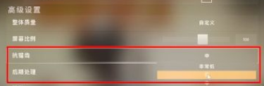 3、在设置中,将“抗锯齿”和“后期处理”调至低,同时将“阴影”、“纹理”、“特效”、“树木”等设置为最低。