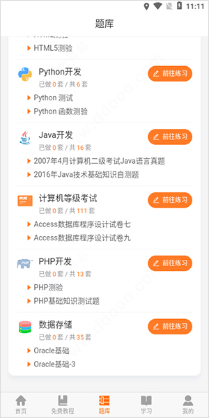 3、学习课程后,您可以在题库中选择相应的课后练习题进行练习;