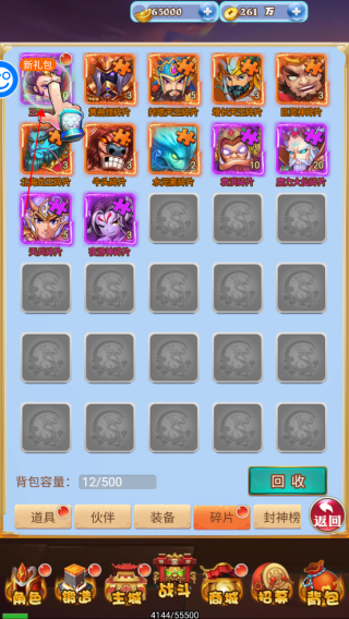 3、初始赠送超级礼包码,可免费领取红将套装和橙色伙伴