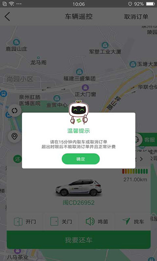 3、支持一键预约车辆功能,用户只需选择最近的车辆停放点,即可通过导航快速到达。