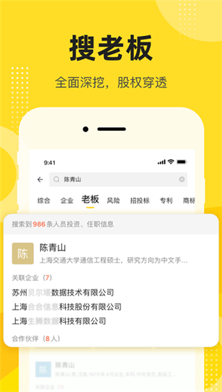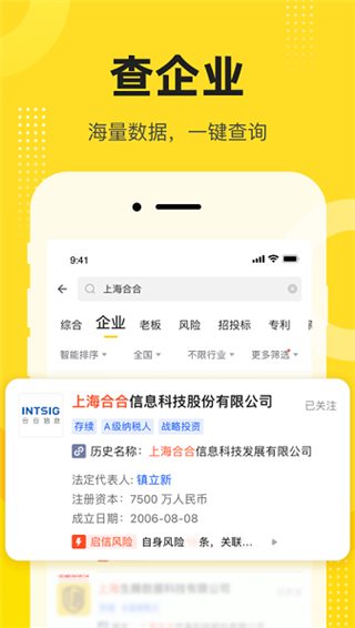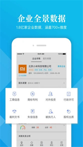 该应用不仅为用户提供了高效的专业企业信息查询服务,还可以直接访问企业的注册信息、法院判决等数据,它还为金融从业者、律师、投资者、媒体工作者及销售和管理人员等提供详尽的企业资料,如工商注册、投资、法拍、资质、许可和处罚信息等,是商业人士获取企业信用信息的必备工具。此外,启信宝app还会实时更新企业的最新动态,如法律纠纷和潜在风险,以及股权结构和高管信息,为商务合作和找工作用户提供全方位的支持。