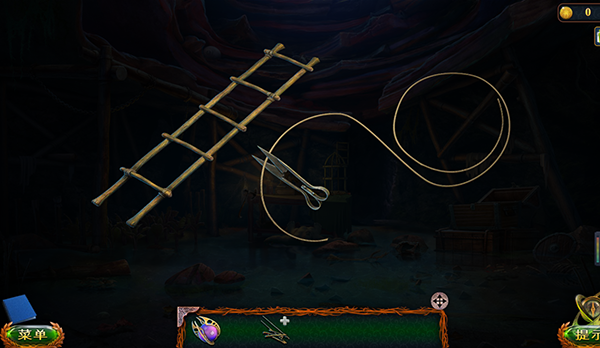 6、在箱子中找到球形石和剪刀,使用这些工具组装并修理梯子,使用剪刀切开绳子。