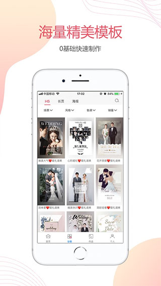 1、应用内包含婚礼电子请柬、宝宝满月电子请柬、电子邀请函、同学聚会通知、生日贺卡、老人寿宴通知、搬家通知等各式场合的海量模板。2、无论是H5页面海报还是长页面,均能一键制作,简便快捷;