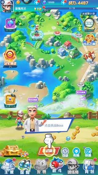旋转吧泡泡君最新破解版是一款以口袋妖怪为题材的宠物放置类游戏,在游戏中,玩家将扮演一位宠物训练师,通过抓捕、养成训练各式各样的精灵来提升自身的战斗力。游戏采取了高品质的画风和特征鲜明的日系风格,还原了原著的动漫世界,为玩家提供了一个美的视觉体验。