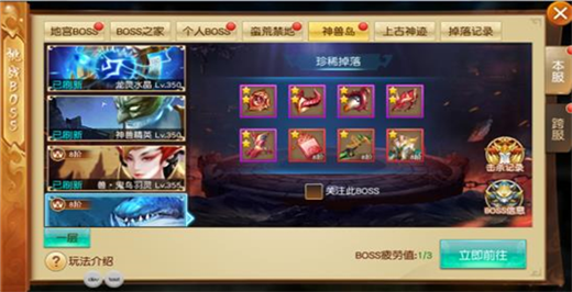 4、采集龙灵水晶每日上限两次;击杀boss产生的疲劳值每日上限为三点,每日0点重置。本服和跨服神兽岛的boss击杀及采集次数共享。