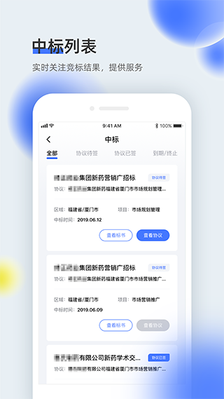 4、标讯信息清晰易懂,每条标讯明确显示中标、应标和招标的相关数据;