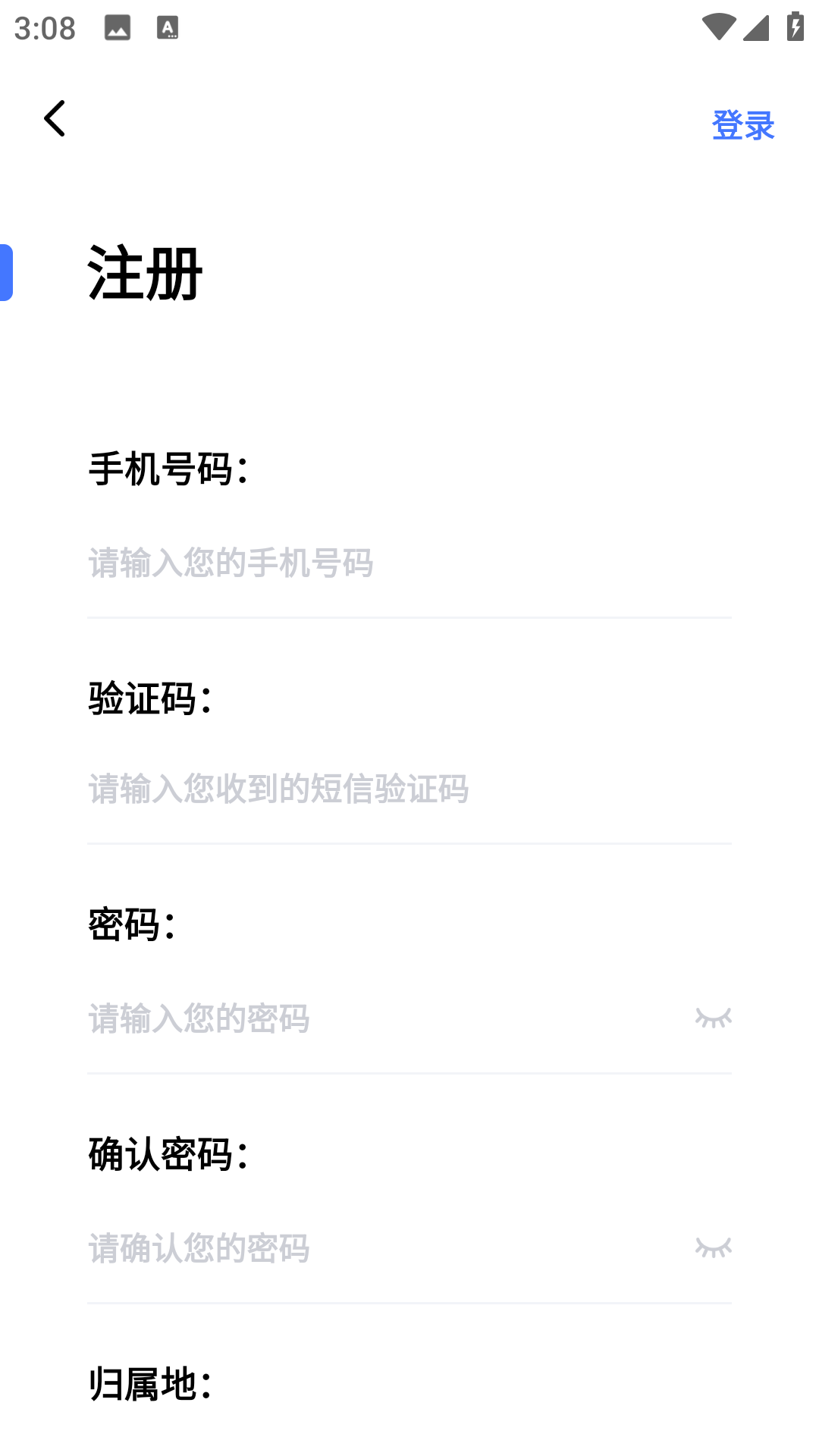 2、接下来,点击“注册”,并按提示填写手机号码、密码以及所需的其他身份信息。