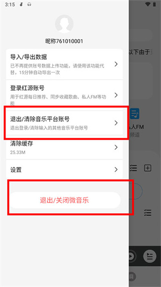 2)选择“退出/清除音乐平台账号”;