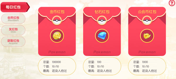 红包:系统每日刷新红包,玩家可以互相抢夺。