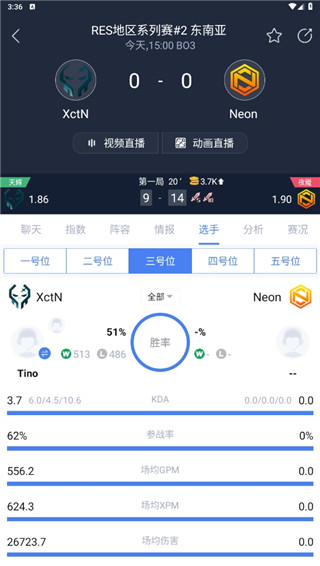 4、最重要的是你还可以看到选手的各种数据,如kda、参战率等